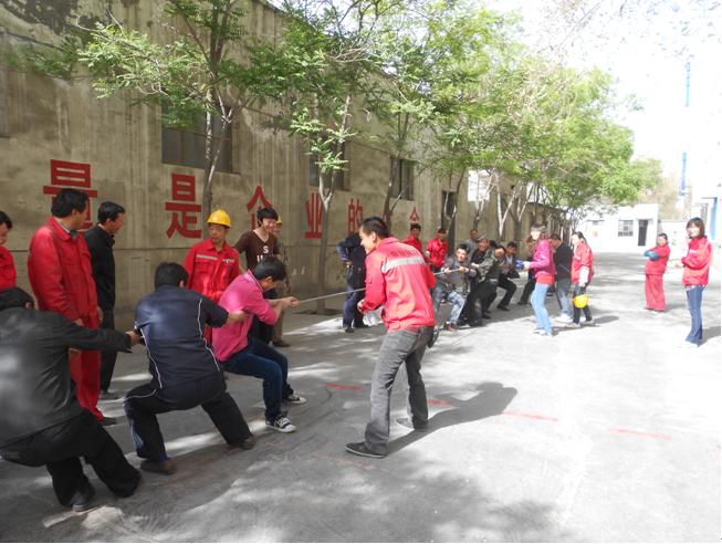 4月28日,銀川公司為迎接“五一”國際勞動(dòng)節(jié),舉行了一場從總經(jīng)理到一線員工的全員運(yùn)動(dòng)會(huì)。集體項(xiàng)目有:拔河、4×100米接力、籃球等。個(gè)人項(xiàng)目有:100米賽跑、跳繩、象棋、乒乓球、臺球等。公司領(lǐng)導(dǎo)和員工共同參加了比賽,大家熱情高漲,斗志昂揚(yáng),讓溫暖、和諧、歡樂洋溢在每一個(gè)賽場。
