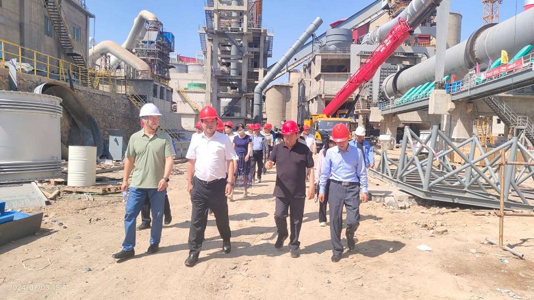 2024年7月3日下午,中衛(wèi)市政府市長馬洪海在中寧縣政府縣長周永根等領導陪同下,到天祥公司視察5000t/d二代熟料生產(chǎn)線項目建設情況,集團董事長范海龍、總裁張澤文、副總裁陳琴等集團領導和公司經(jīng)理郭軍等公司領導陪同,就項目建設情況及存在問題做了匯報。